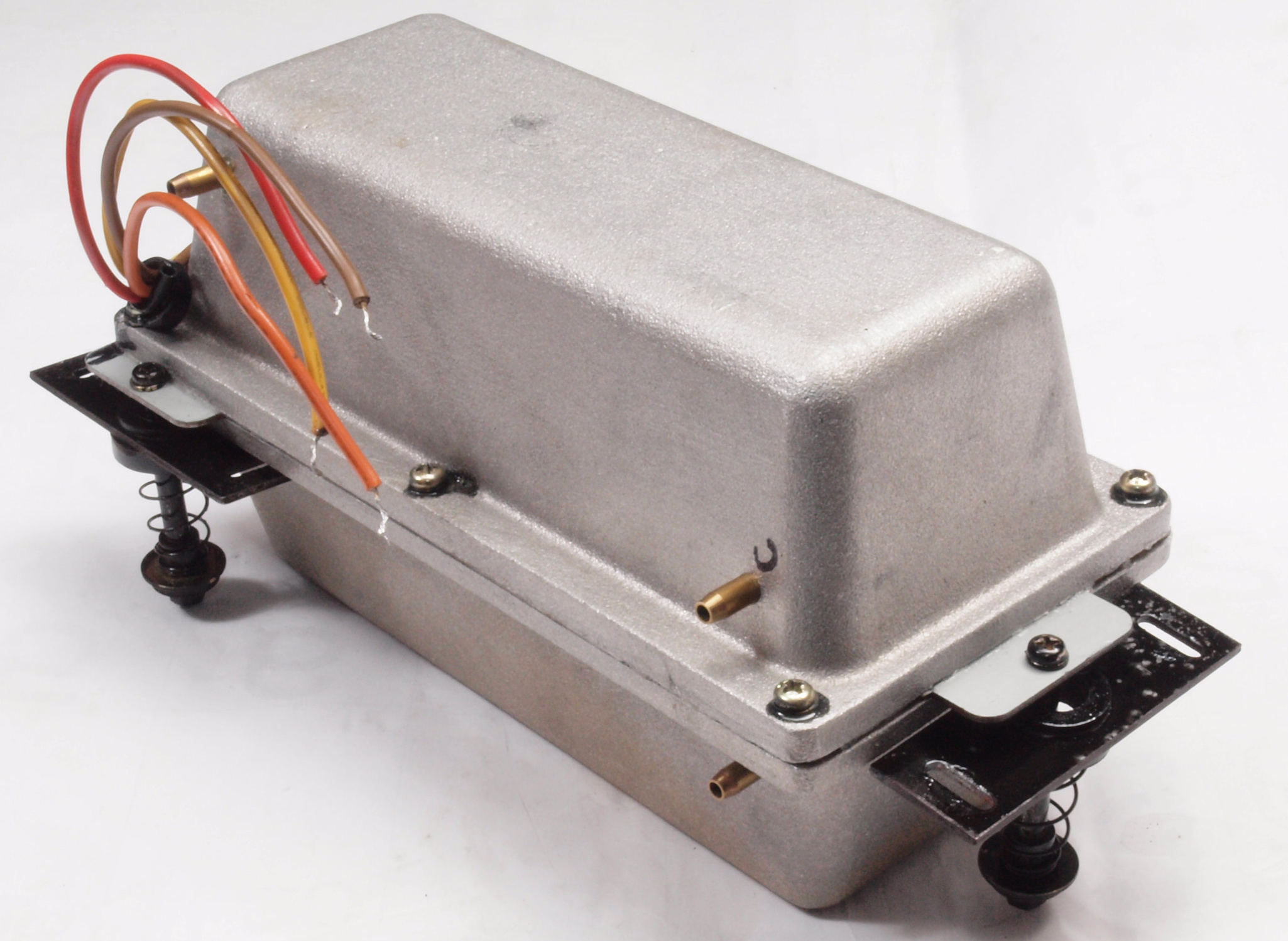 CA5. 修理前 下蓋(底板)裏。 前回の修理で吸気口にボルトが挿入。輸送時に表からポンプを固定するビス、普通は外す。