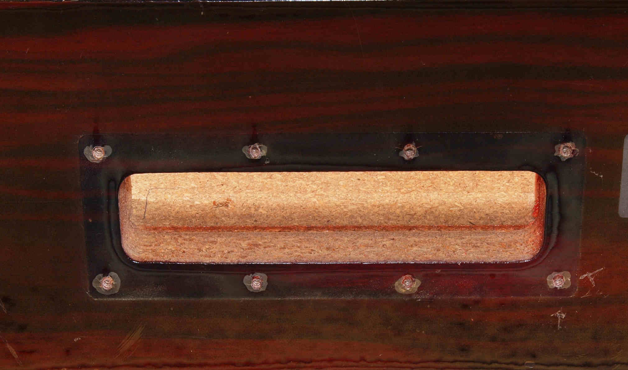 | W6B. 修理中 底板裏側、 左から。 圧縮材に、水性木工ボンドを塗布する。 | ||||||||||||||||||||