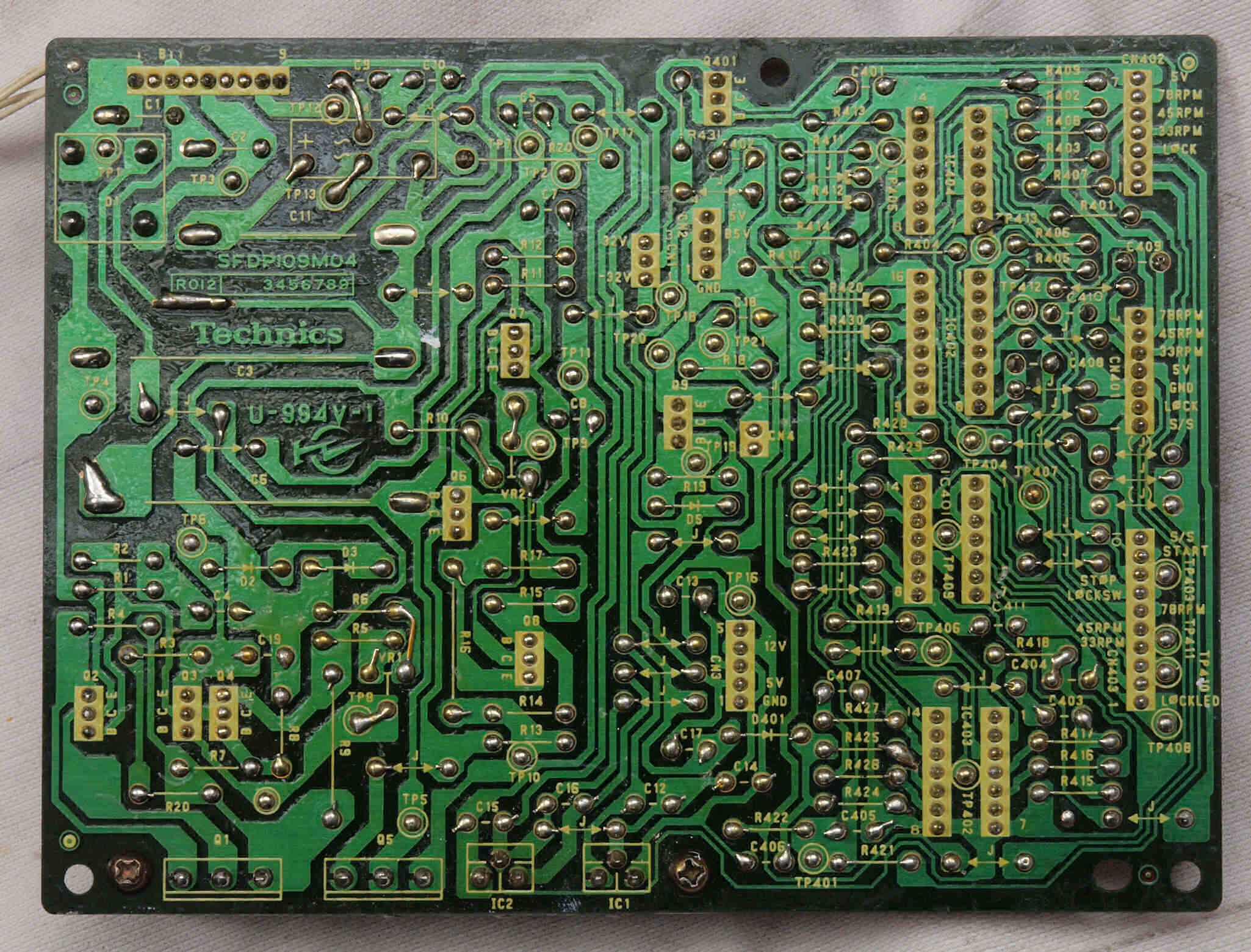 A4D2. 点検中 駆動回路基板。 駆動TR(トランジスター)が6個交換されている。