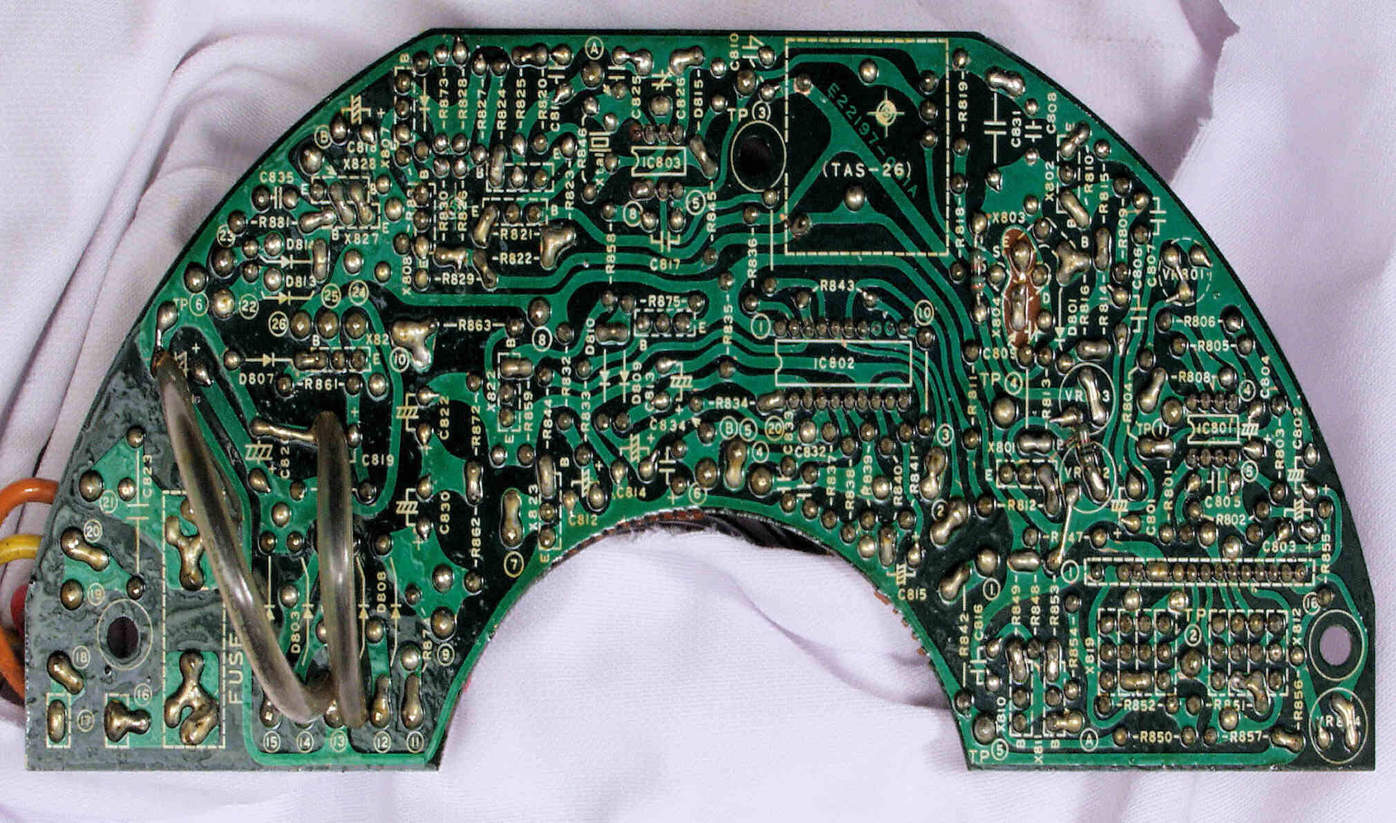 | A62. 点検中 メイン基板裏、 心臓部のICが交換か半田補正されている。 | ||||||||||||||||||||||||||||