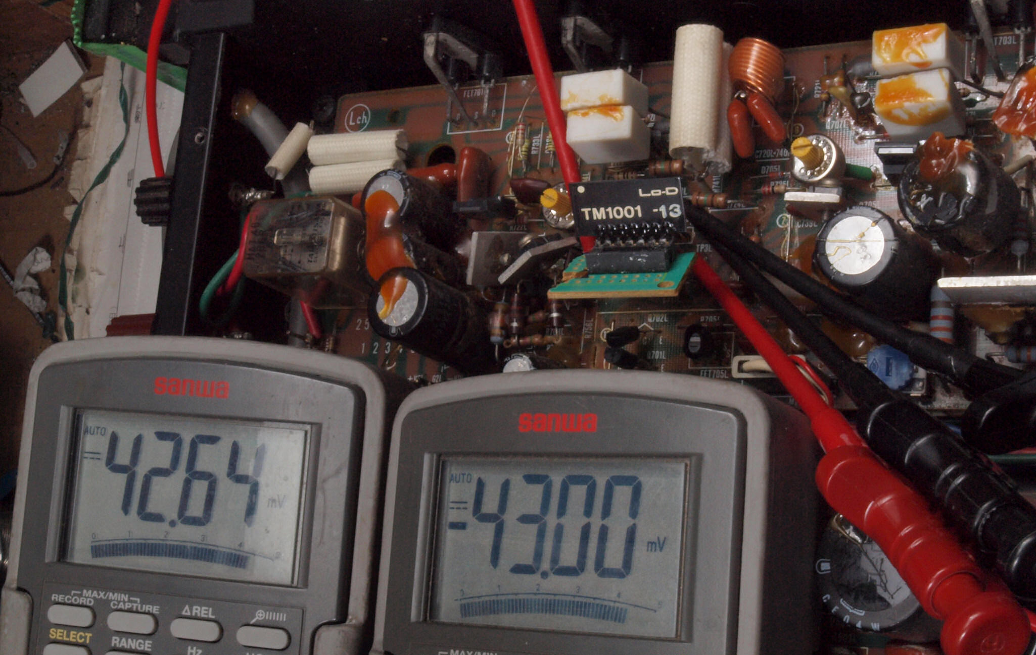 ヒューズ入り抵抗全部、電解コンデンサー11個、TR(トランジスター)2個交換、モジュール修理交換部品は除く。