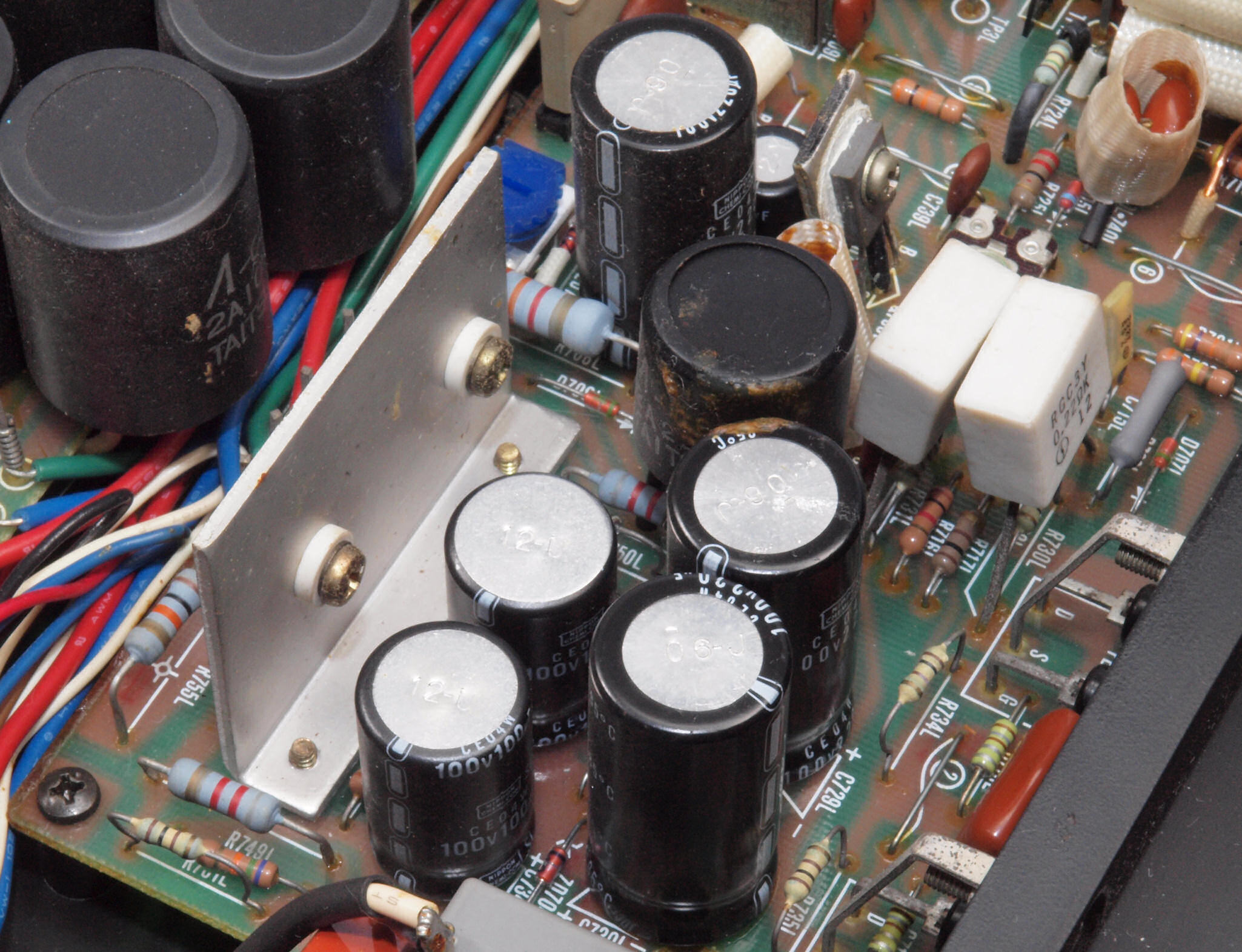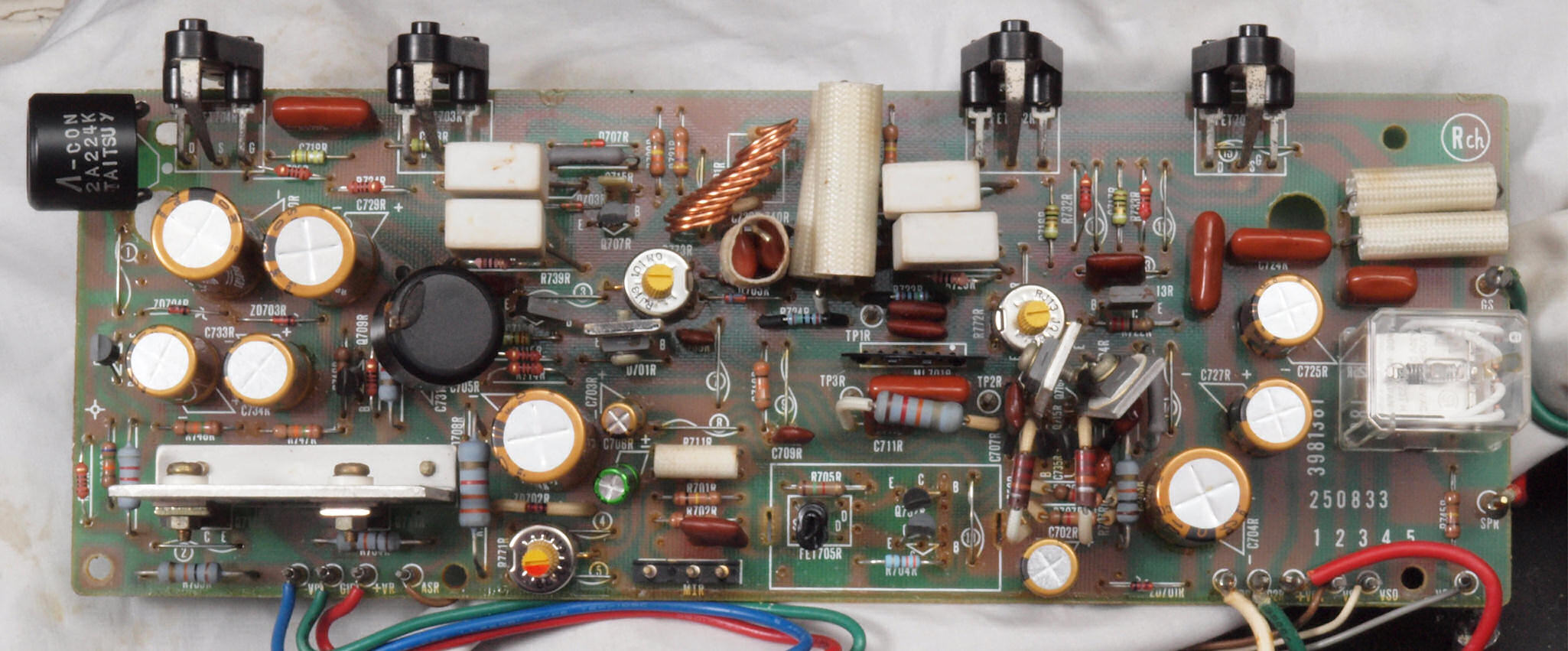 | C72. 修理後 入力RCA端子基板。 フイルムコンデンサー2個交換。 |