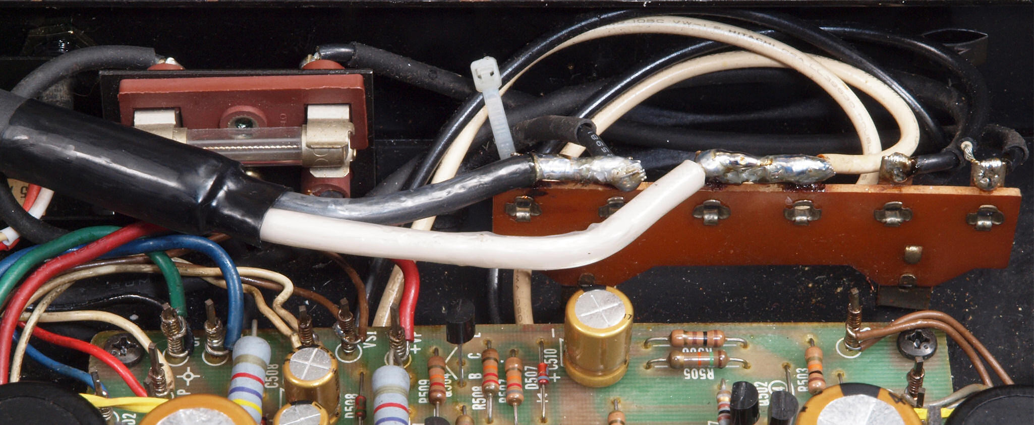 | CB1. 修理前 電源ケーブル取り付け部。 |