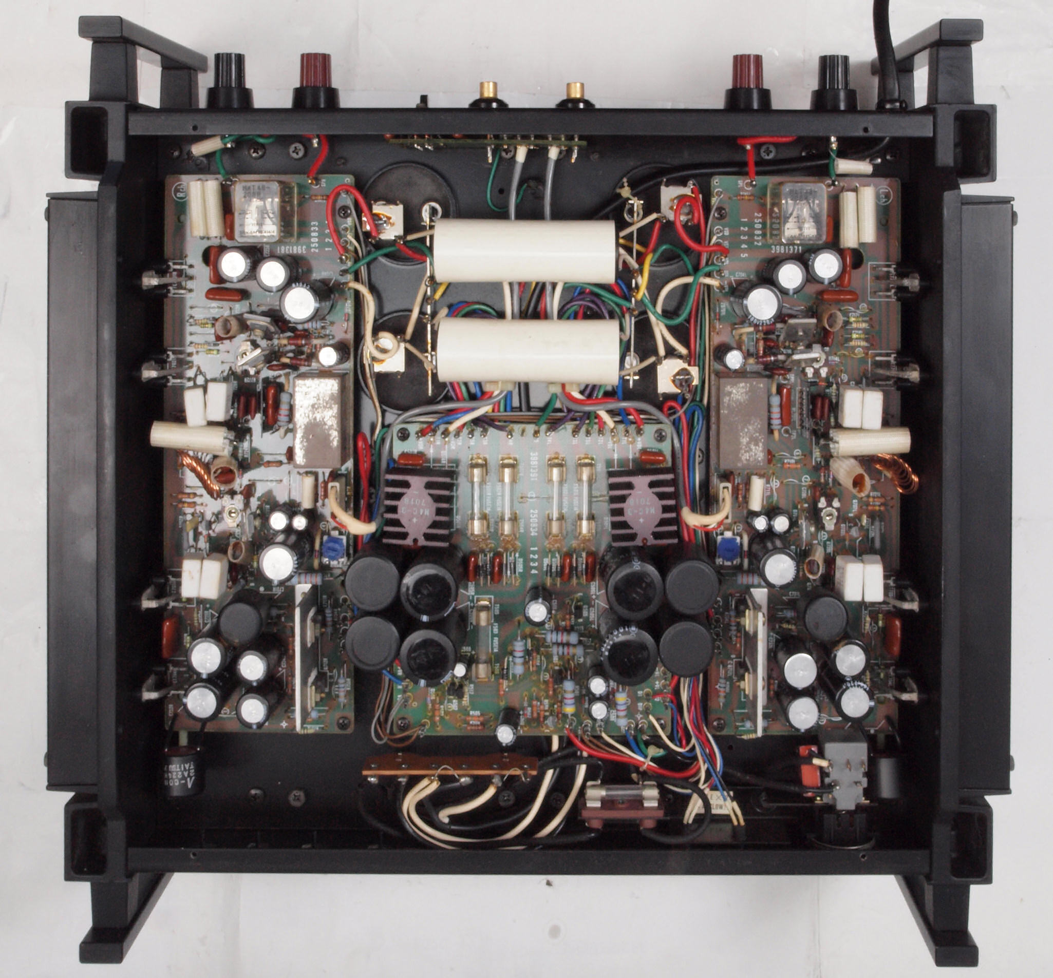 | A32. 点検中 電源トランスの詰め物を見る。左右共焼けは少し。 |