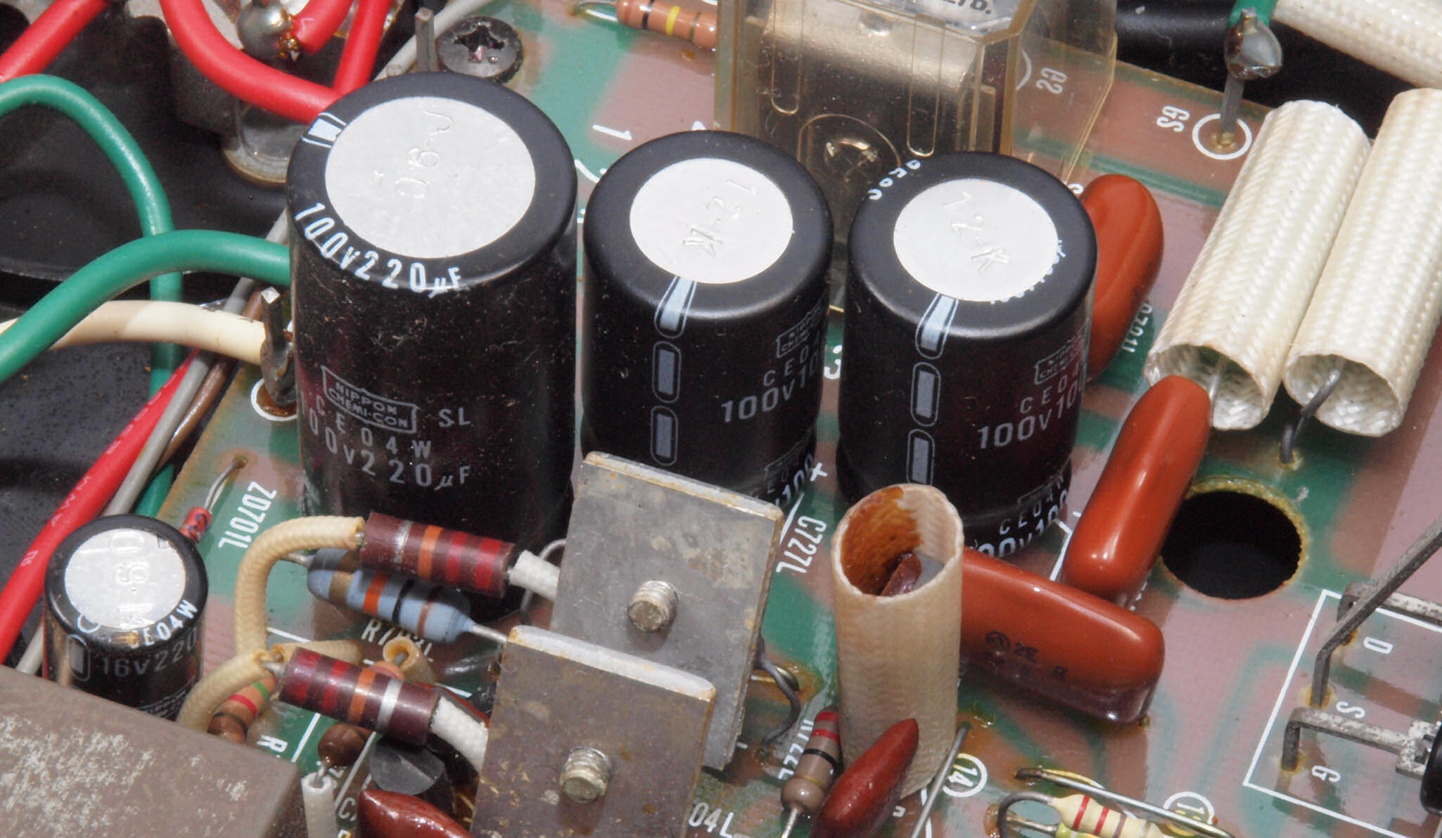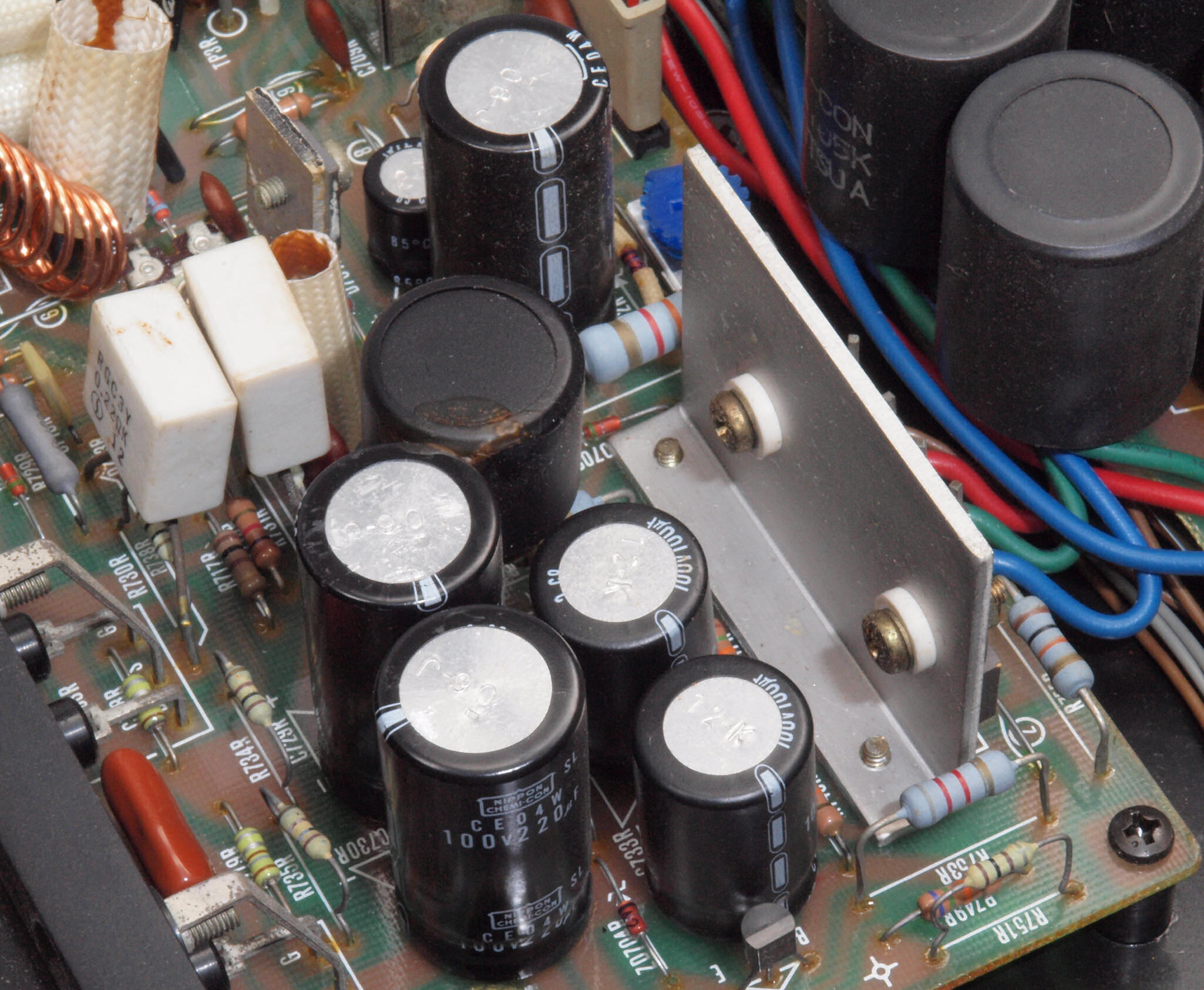 | A52. 点検中 電解コンデンサー外観比較、220μ/100V |