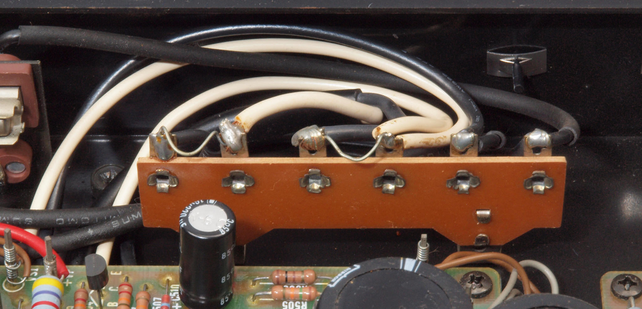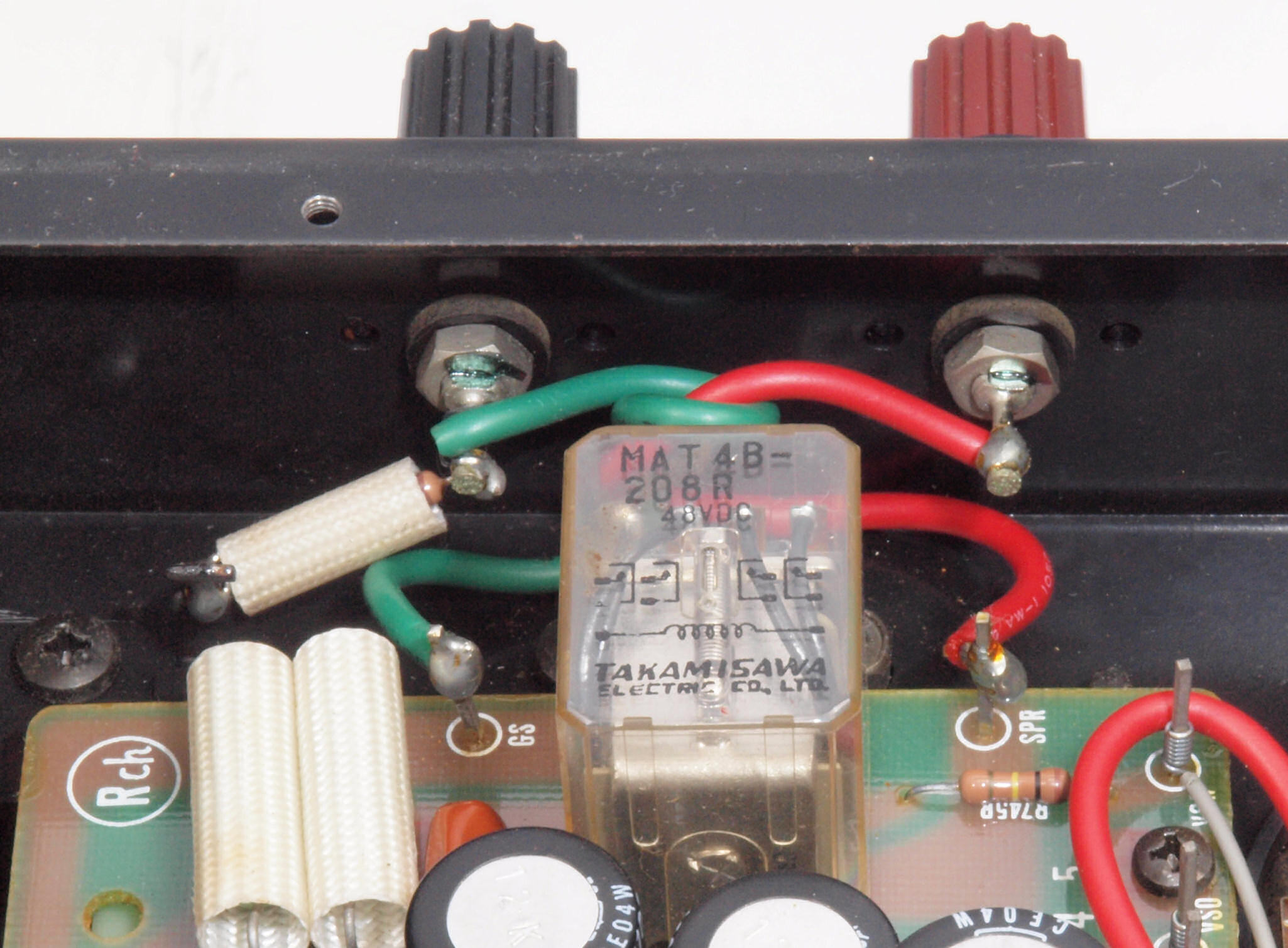| A76. 点検中 R−SP端子。 WBT−0735に交換可能です、但し既存の取り付け穴が見えます。 |