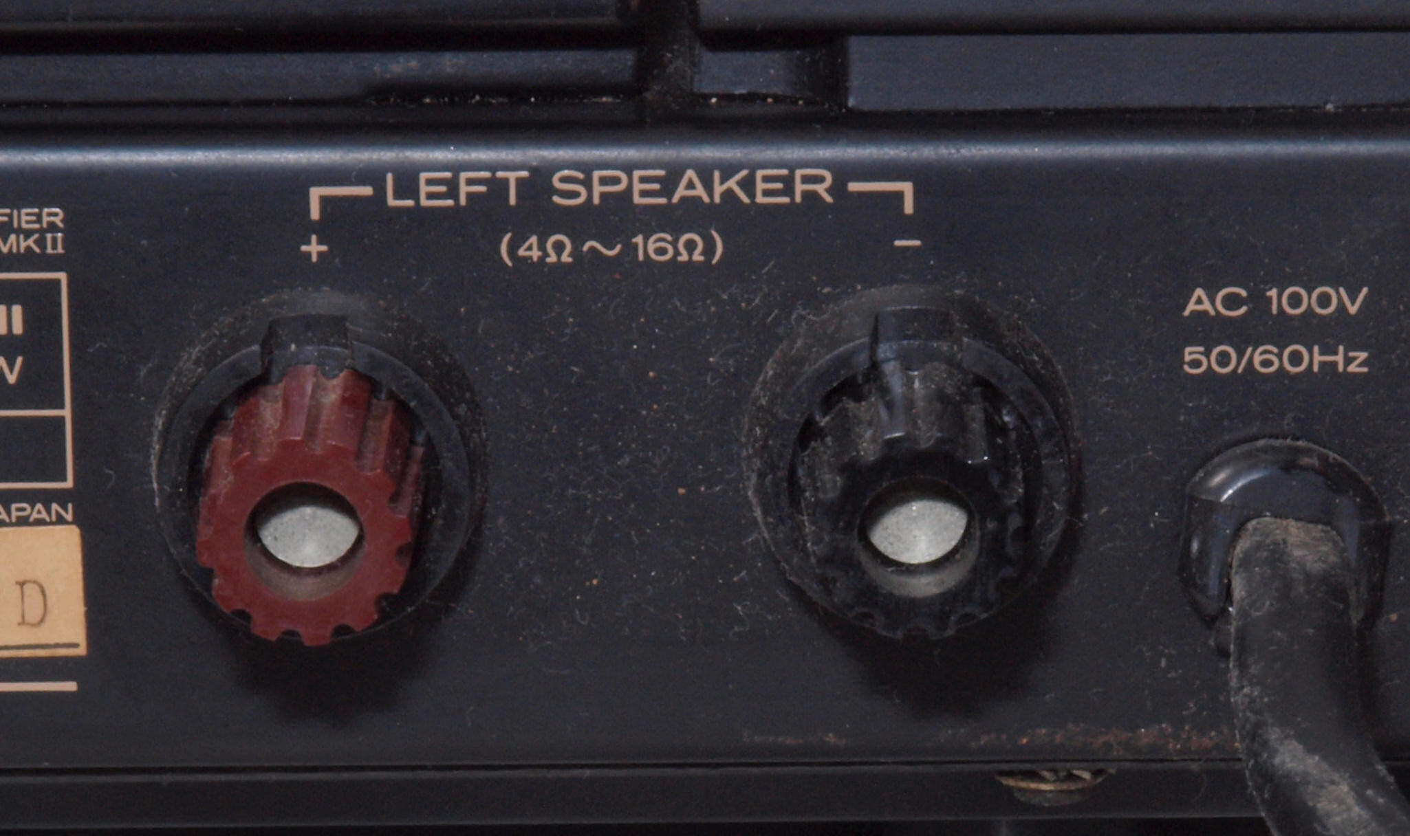 | 注意 このAMPはアースラインが浮いています。 AMPのシャーシにSPの線(アース側)やプリAMPのアースもも接続してはいけません。 RL−SPのアース線も接続(共通)してもいけません、+−の撚りのあるのも使用出来ません。 又、DC(directconnection)入力が可能ですが、絶対に使用しないこと=ここ参照 |