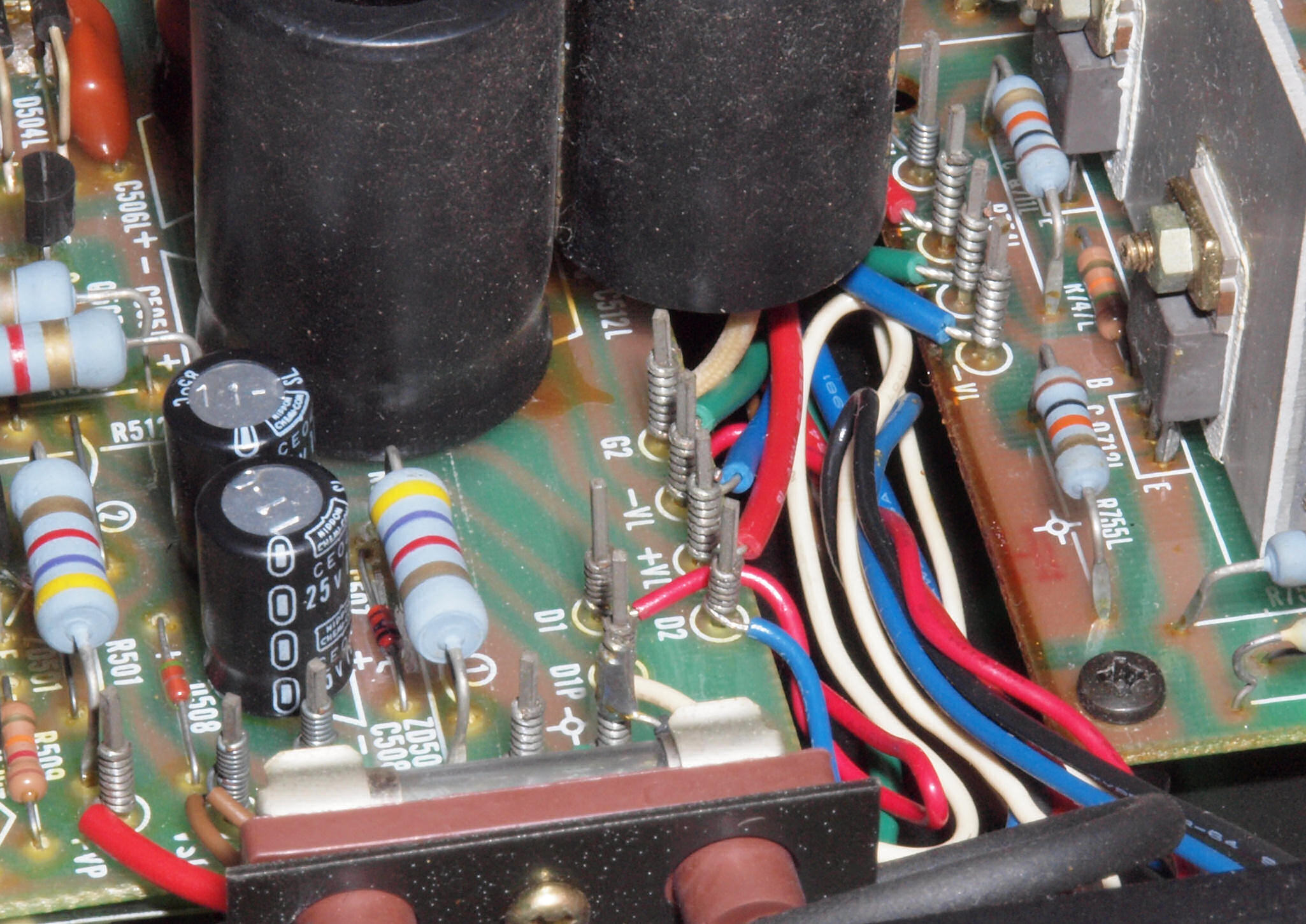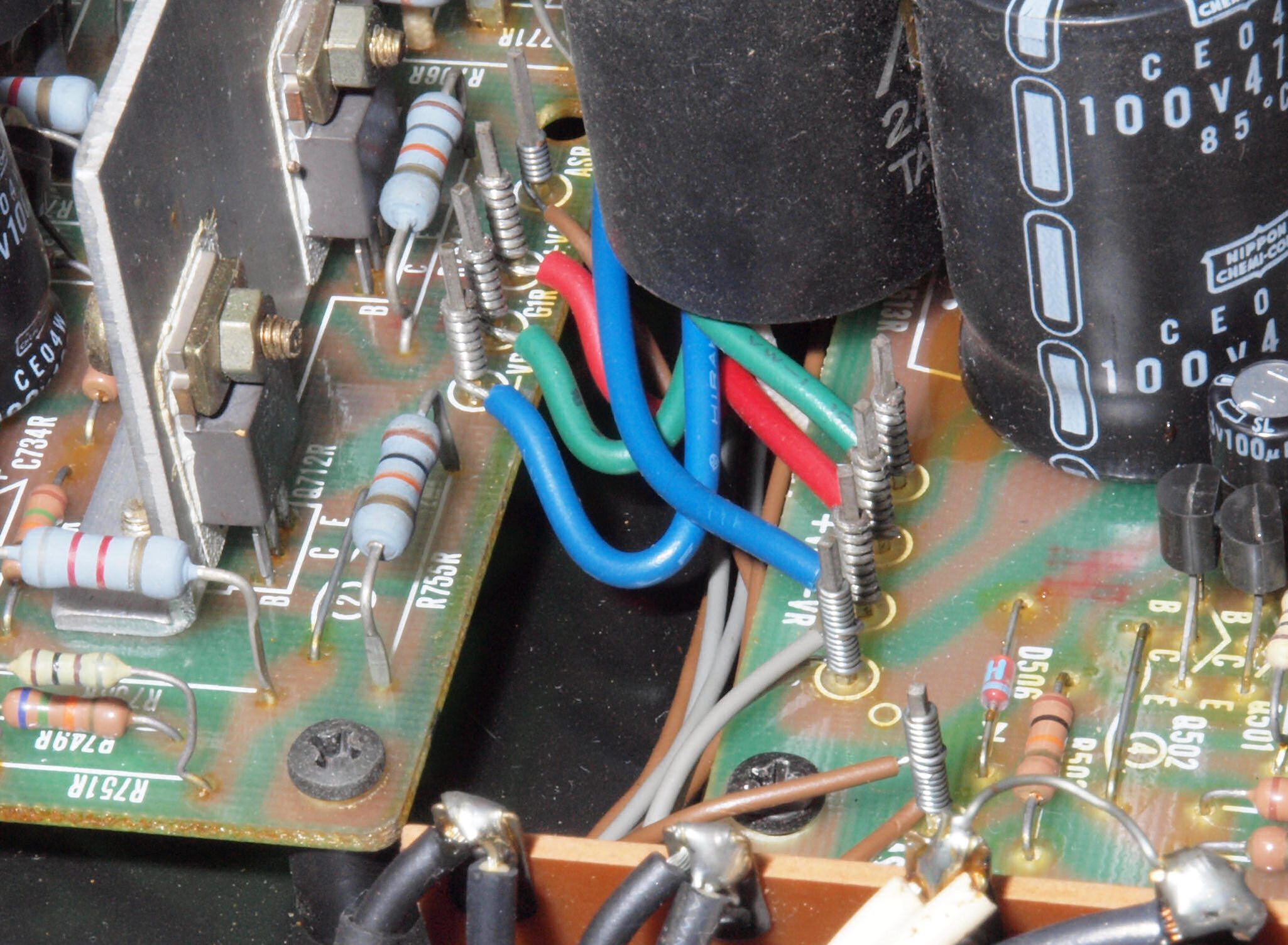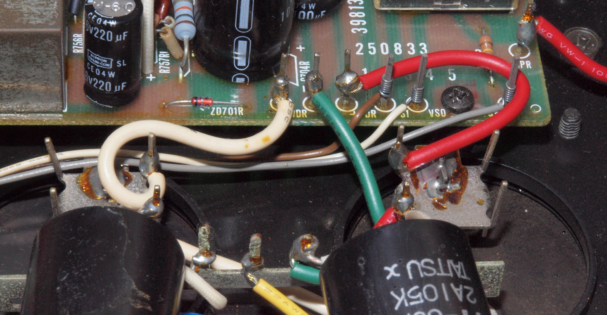 | CC5. 修理前 R側ドライブ基板−電源基板へのラッピング線。 |