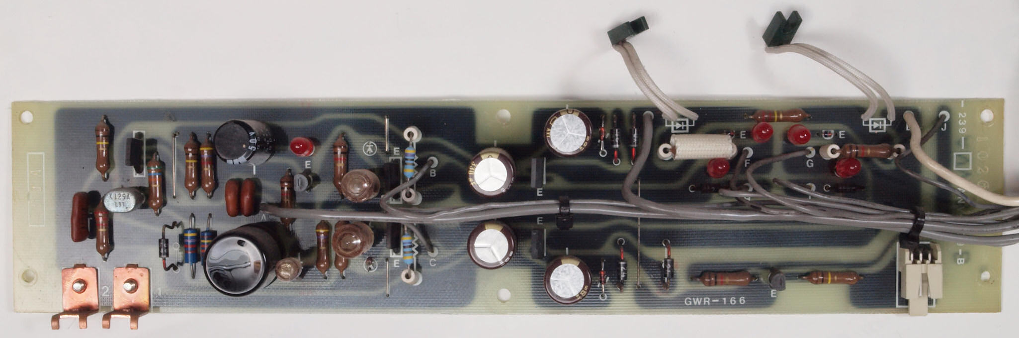 A45. 点検中 木ケースから取り出し、上から見る。 定電圧電源基板のフイルムコンデンサーのヒビ割れ その2。