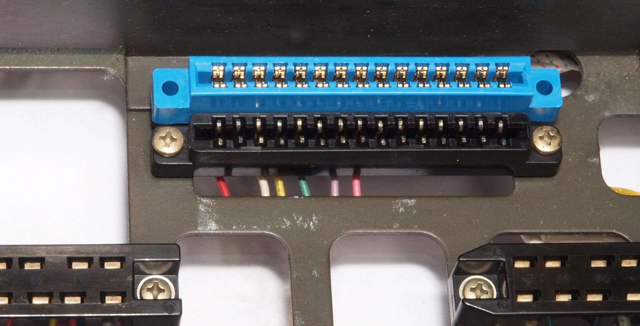 GCB. 修理中 左側ドライブ基板のカードエッジ・コネクター。上が交換する物。