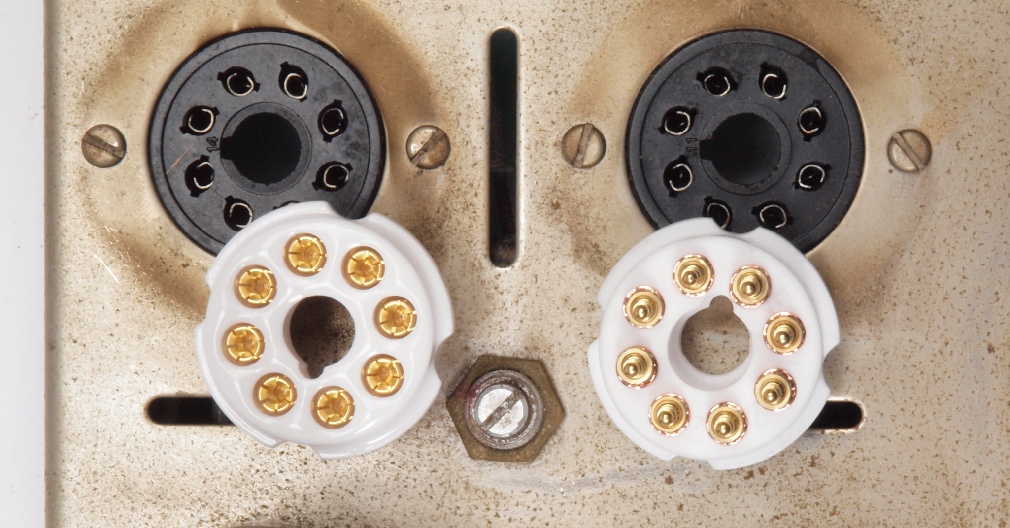 | A61. 点検中 KT−88用USソケット。 上=ベーク製USソケット、下=交換するタイト製USソケット。 | ||||||||||||||||||||||||||||